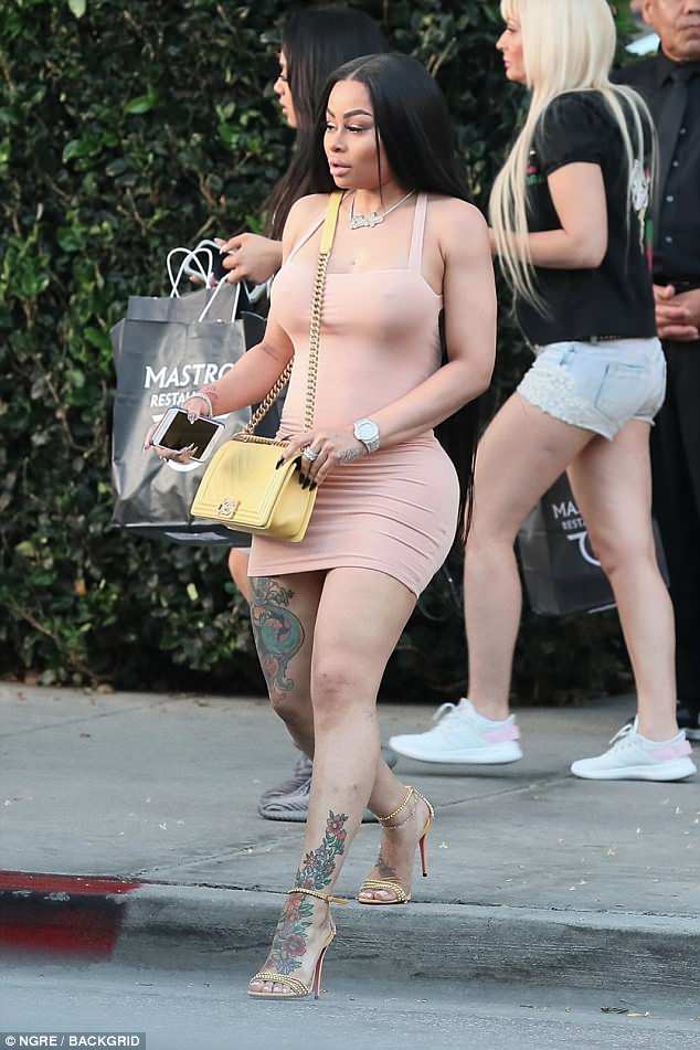 Chyna stepped out on Saturday in a mini nude dress complete with matching yellow heels and bag as she posed up a storm for the gram.