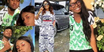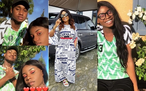 The beautiful actress recently shared photos of her kids rocking the latest Super Eagles Jersey.