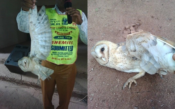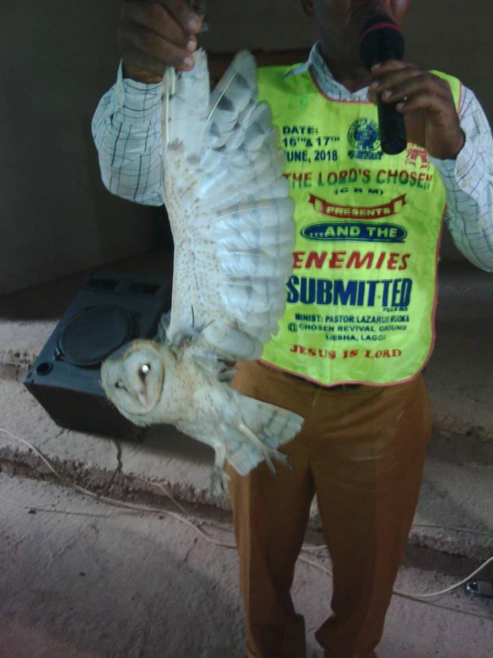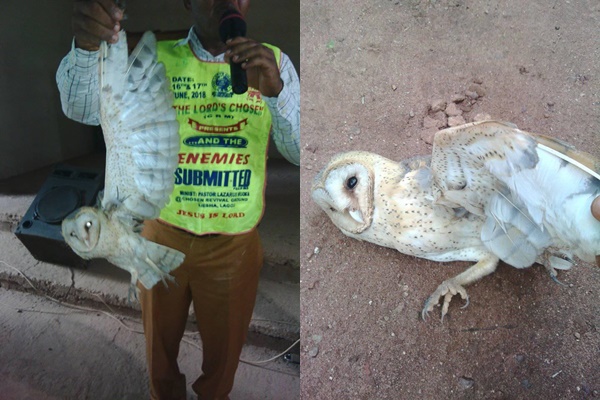A member of the The Lord’s Chosen Charismatic Revival Ministries gave testimony after catching an owl withing the church premises. According to Jerome Onyebuchi, the bird was caught after a night vigil was held in the church at Enugu Ezike community in Enugu state – as the owl was labeled “evil”.