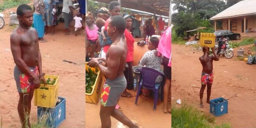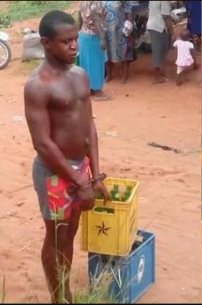 A Nigerian man has been given the disgrace of a lifetime after he was reportedly flogged mercilessly and dragged round the village for allegedly stealing two crates of empty beer.