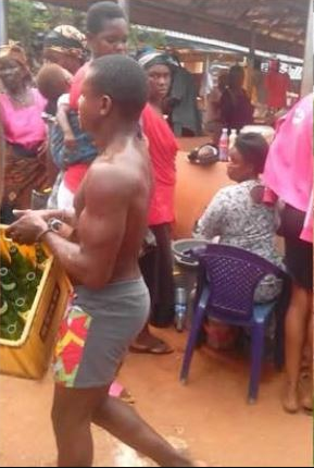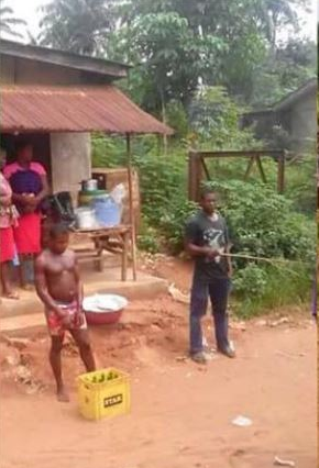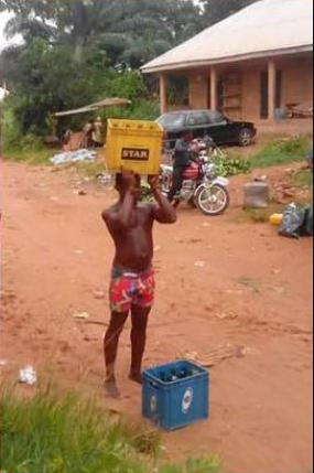 The sad incident took place today in Aguluezechukwu, Anambra State. He was also forced to carry the empty crates as people jeered him.