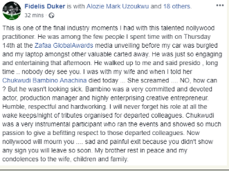 Also movie producer, Fidelis Duker confirmed Ananchina’s death on his Facebook page.