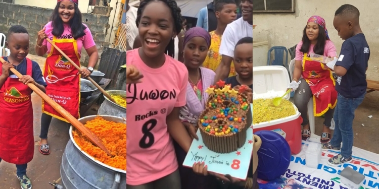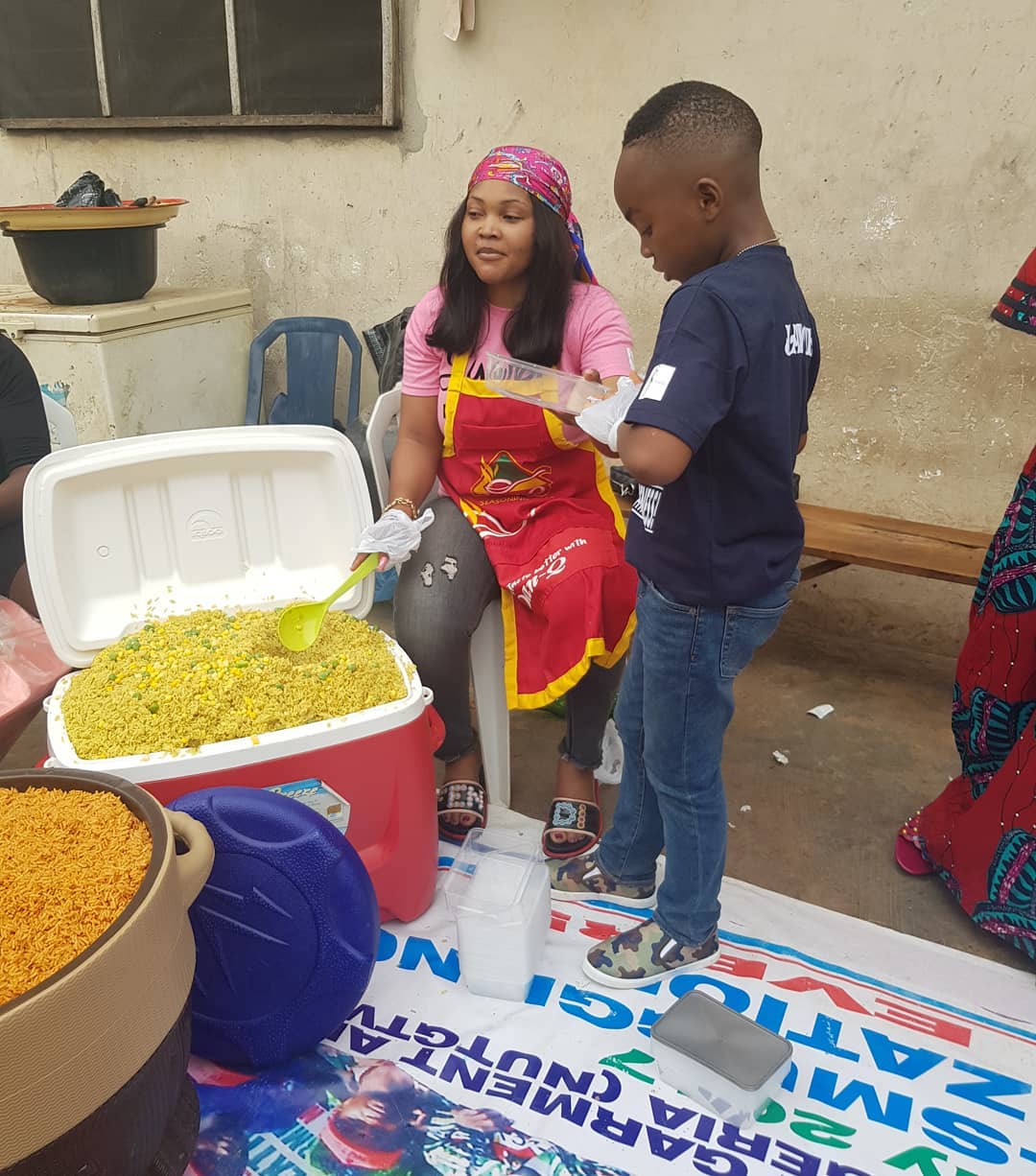 In celebration, the actress and her adorable son took to the streets to give out to the poor and needy.