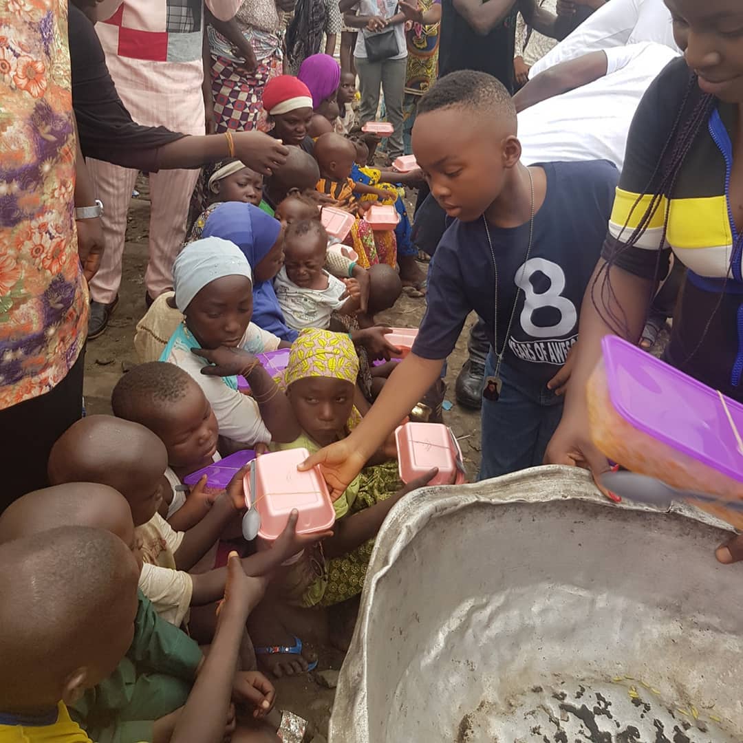 Momma and Birthday Boy getting ready to feed the children……thank you so much @kokunfoundation for giving us the chance today!……And allowing Juwon share his special day with the kids
