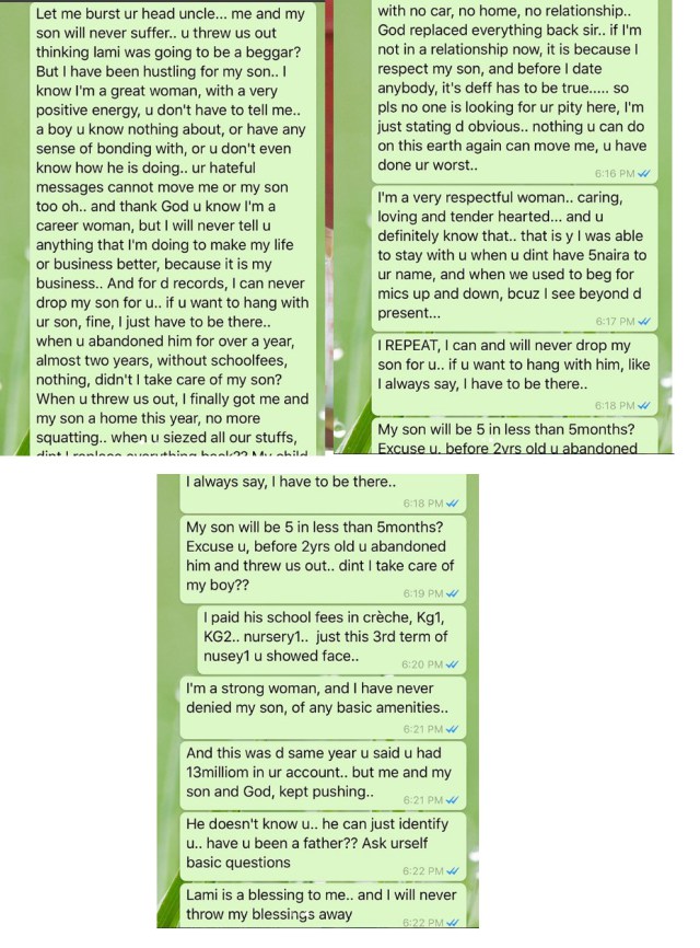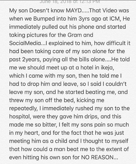 We always tried to Reach out… But MAYD said u won’t take care of him…. You Don’t know how this BoY, Feeds, schools, or does anything.. and since 3yrs ago when I tried all my possible best to reach out, But u said u never want to see him and u have a life ahead of u..