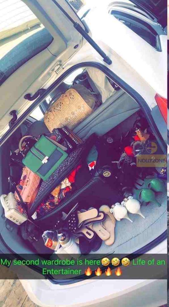 The actress who just recently got out of rifts with her colleagues, even though, Juliet Ibrahim has still not accepted her apology; took to her page to share photos of her new car as she turns it into a wardrobe.