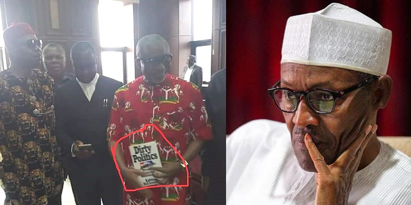 Senator Enyinnaya Abaribe this morning appeared in Abuja court holding a book called ‘Dirty politics’, this could be a subtle way of telling Nigerians that FG is playing a dirty politics.