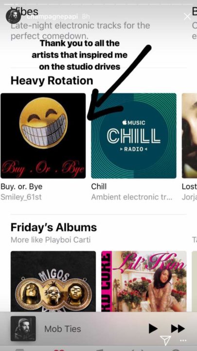 This information was made by the rapper via his Instagram story where he stated that he’ll like to appreciate all the artistes whose works have inspired him in his “studio drive”.