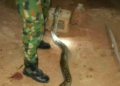 The soldier, after he was bitten by the huge python snake was able to kill it. The snake was later used to prepare a sumptuous meal by his family.