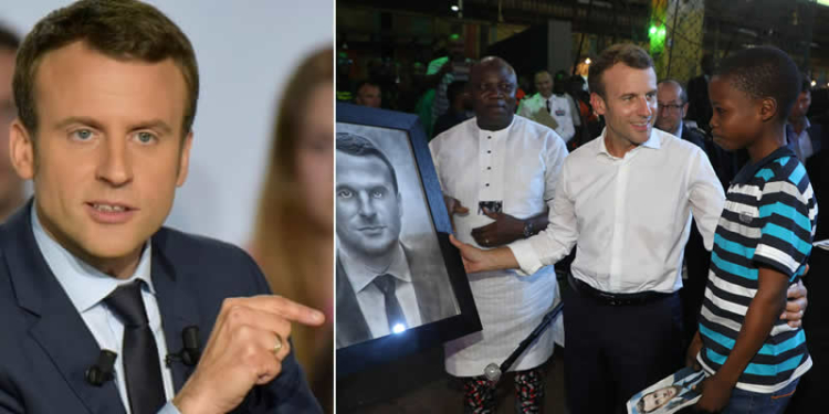 President Macron was presented with the painting by the host of the event, Banky W, alongside Lagos State Governor, Akinwunmi Ambode. Olamilekan was called onto the platform to meet the French President.