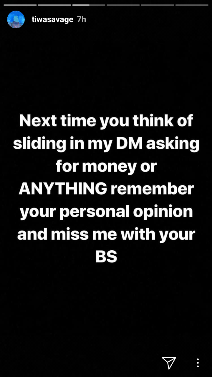 Next time you think of sliding in my DM asking for money or anything remember your personal opinion and miss me with your bs, she said without revealing who the messages were directed at.