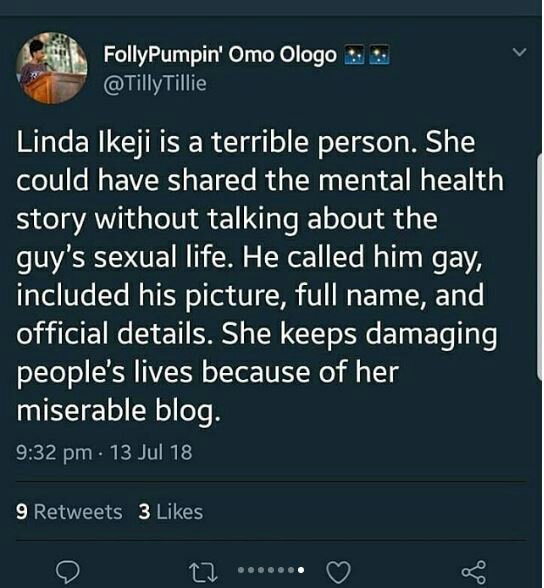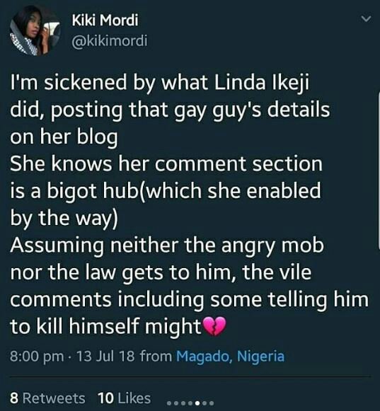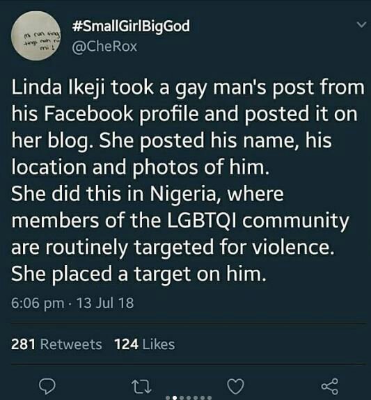 While some Twitter users slammed Linda Ikeji for allowing and approving the comments of her readers who cyber-bullied the victim, others expressed their worry over the safety of the gay poet.