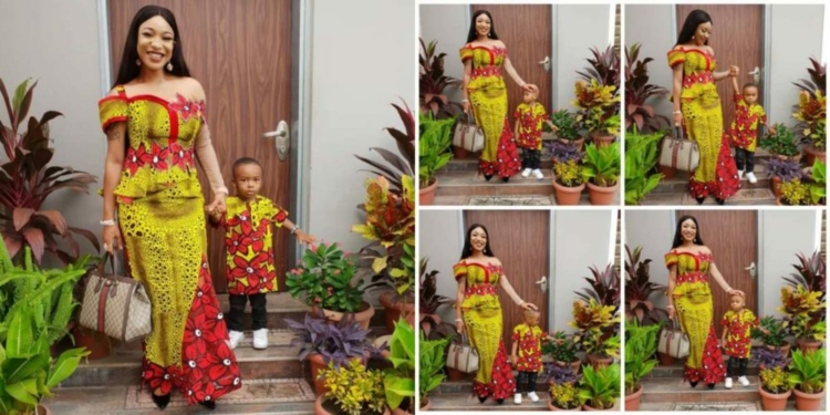 The proud mother had showered encomium on her son following his graduation ceremony in school this weekend. She posed in what appears to be the front of her house alongside her son before going for today’s church service.