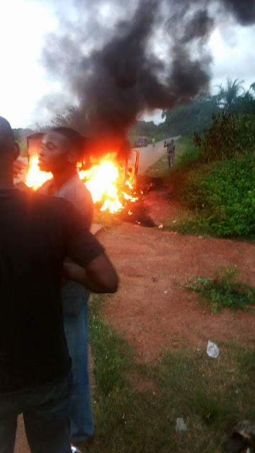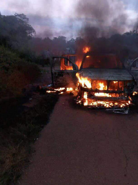 According to reports, the assailants hid in the bush and waited till the officers resumed duty. While the driver of the police van was trying to park, the killers opened fire on them and later set them ablaze.