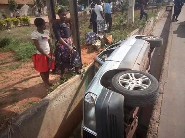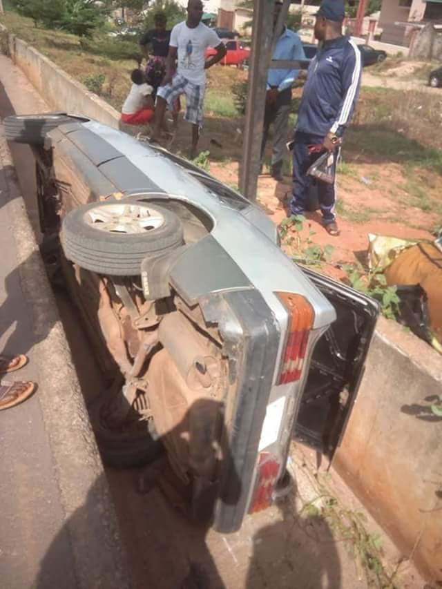 A mother and her young daughter escaped death after their car somersaulted and plunged into a gutter around the Government House, Awka, the Anambra State capital on Monday evening.