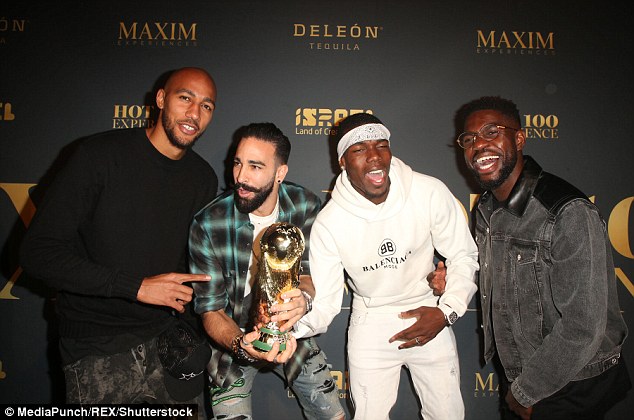 And the France quartet made sure to remind their fellow party-goers of their success in Russia as they brought a replica World Cup trophy with them.