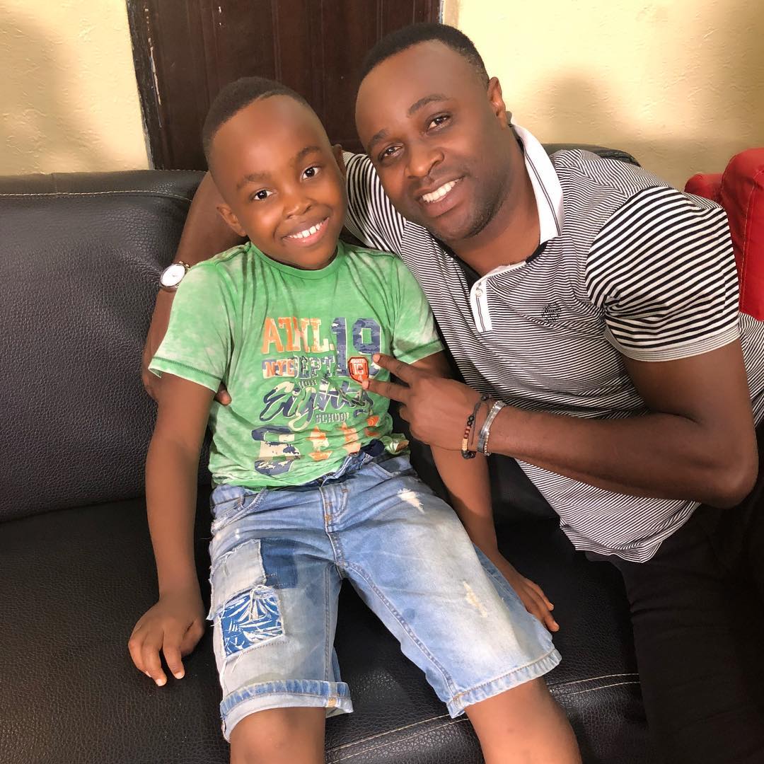 Actor Femi Adebayo pictured in cute photo with Mercy Aigbe’s son Juwon