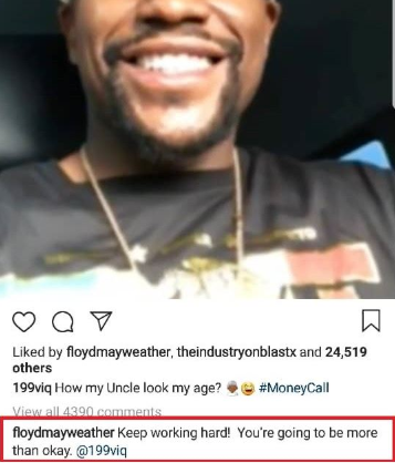 Floyd Mayweather also dropped a comment, encouraging Marquise to “Keep working hard! You’re going to be more than okay,” Floyd wrote.