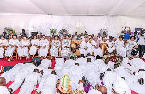Oba Lamidi Adeyemi was pictured at the wedding which took place over the weekend, with all his wives with him.