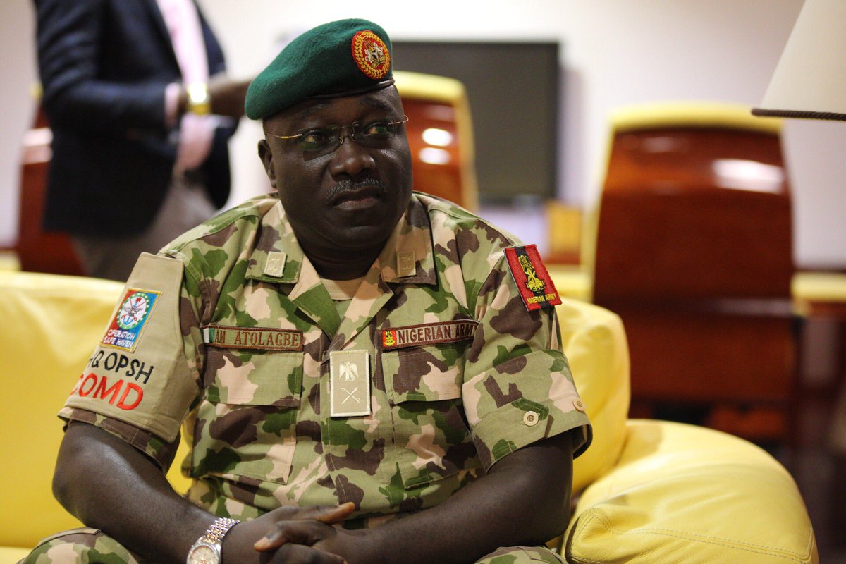 General Abayomi Gabriel Olonisakin had removed Atolagbe and subsequently replaced him with Major General Augustine Chris Chukwudi Agundu as the new Commander, a development many observers attributed to the increased attacks in Plateau State that led to death of scores of Nigerians, left many others other injured with properties destroyed under the leadership of the former leader.
