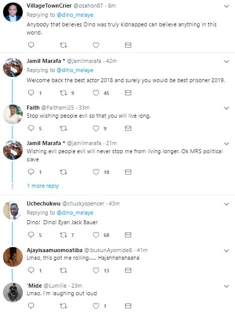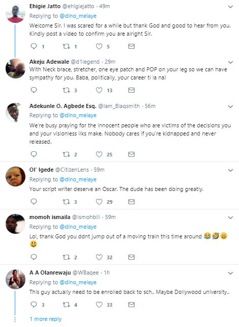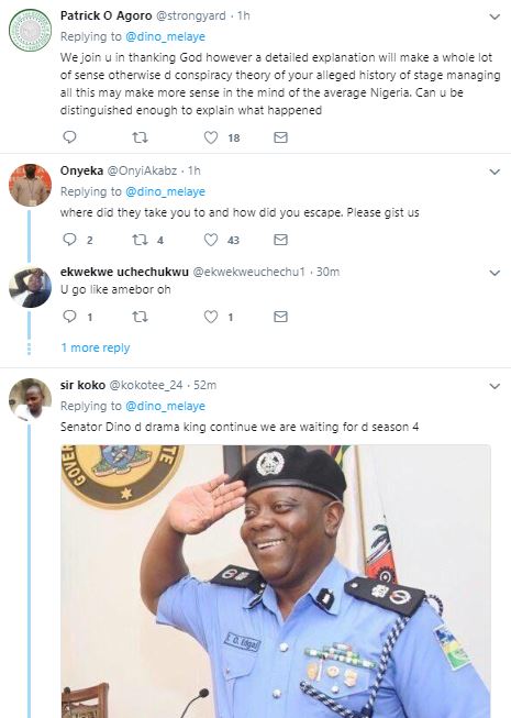 Following recent reports that Nigerian senator, Dino Melaye who was reportedly kidnapped by unknown gunmen yesterday has regained freedom, Nigerians have taken to social media to react.