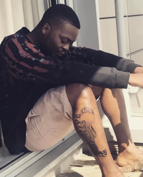 If our native land is determined at birth, then our hobby and profession is a personal choice. This is the theme of the Olamide’s second tattoo. In early 2017, the rapper inked a picture of the guitar on his right leg, emphasizing his love for the music industry to which he decided to devote his life.