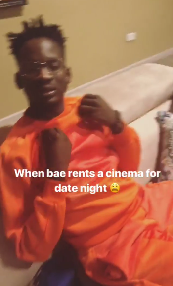Singer Mr Eazi took his bae, Temi Otedola on a romantic date last night, and rented a cinema for both of them to watch a movie.