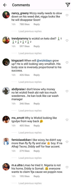 Moments after American singer and business man “Diddy” posted a video on his instagram page talking about coming home to Nigeria with “Wizkid”, concerned Nigerians are now reacting to how Starboy looks in the video.