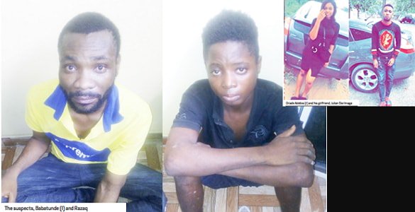 26-year-old Murtala Babatunde, and 18-year-old Taiwo Razaq, have confessed that they killed Adebisi Oriade, 22, and his girlfriend, Juliana Eke Imaga, both students of Olabisi Onabanjo University, Ago Iwoye, Ogun State with a plank when several attempts to use their gun failed to work.