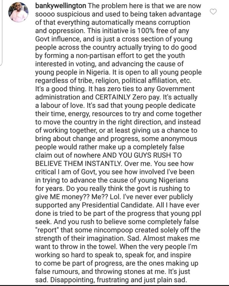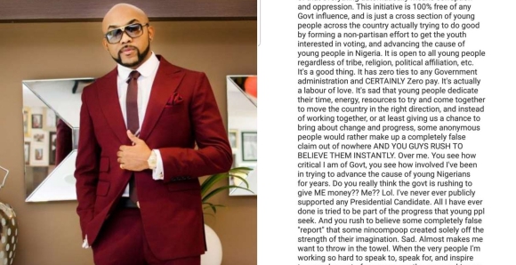 Bankole Wellington AKA Mr Banky W was said to have been contracted by President Buhari’s administration to promote the president’s re-election bid under the guise of the 67millionYouth initiative.