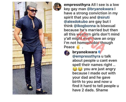 The fan alleged Bryan Okwara and Alex Dokubo of been gay.. She also accused IK Ogbonna of been bisexual..
