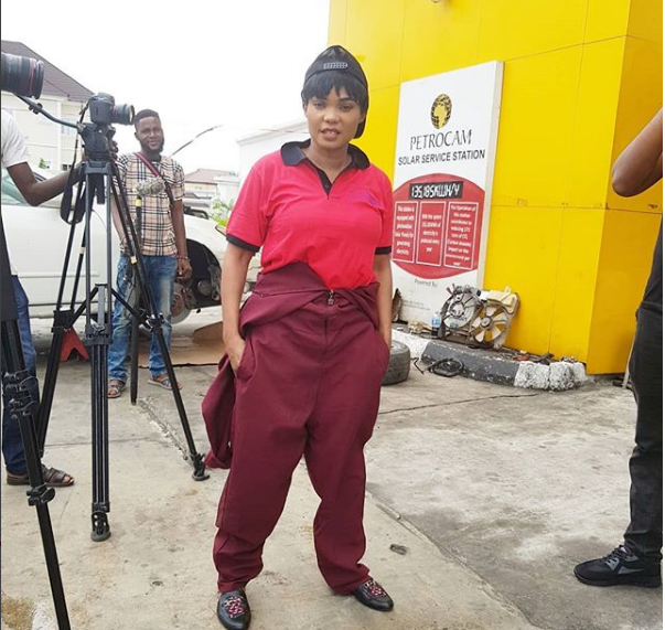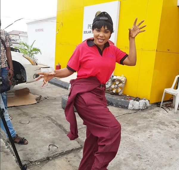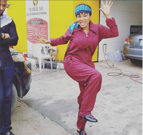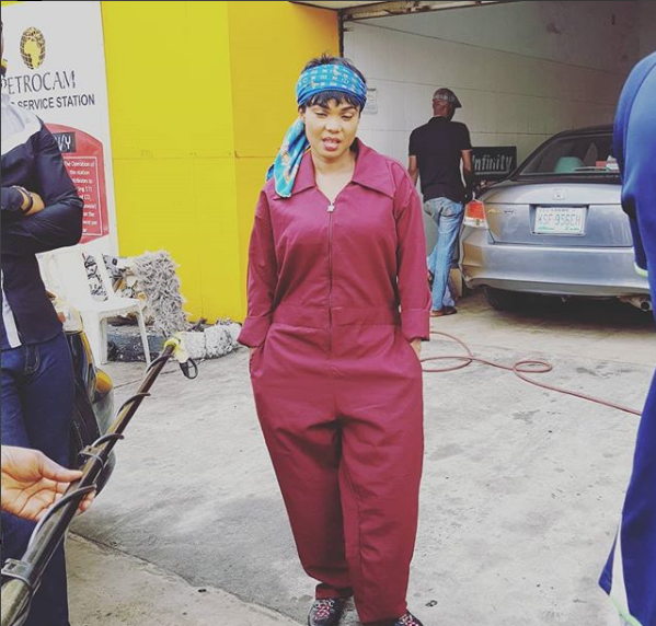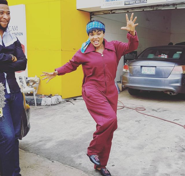Opulent Lagos entrepreneur and actress, Iyabo Ojo was seen playing the role of a vehicle mechanic in a movie that is being shot.