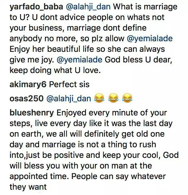 Then, a cheeky fan took to the comment section, advising her to get married as she’s getting old.