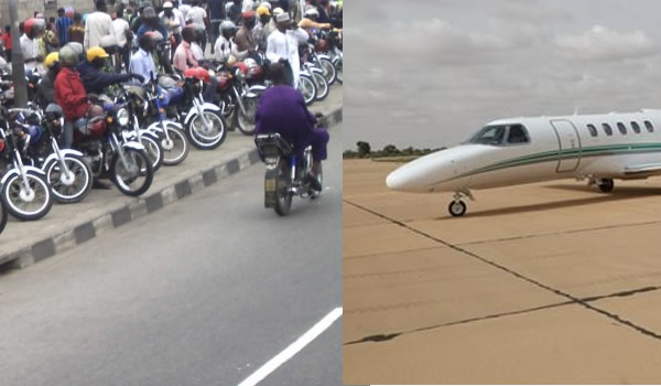 The video shared on twitter showed that the video was shot from inside a taxiing plane and shows motorcyclists (Okada Riders) right on the same runway as the plane.