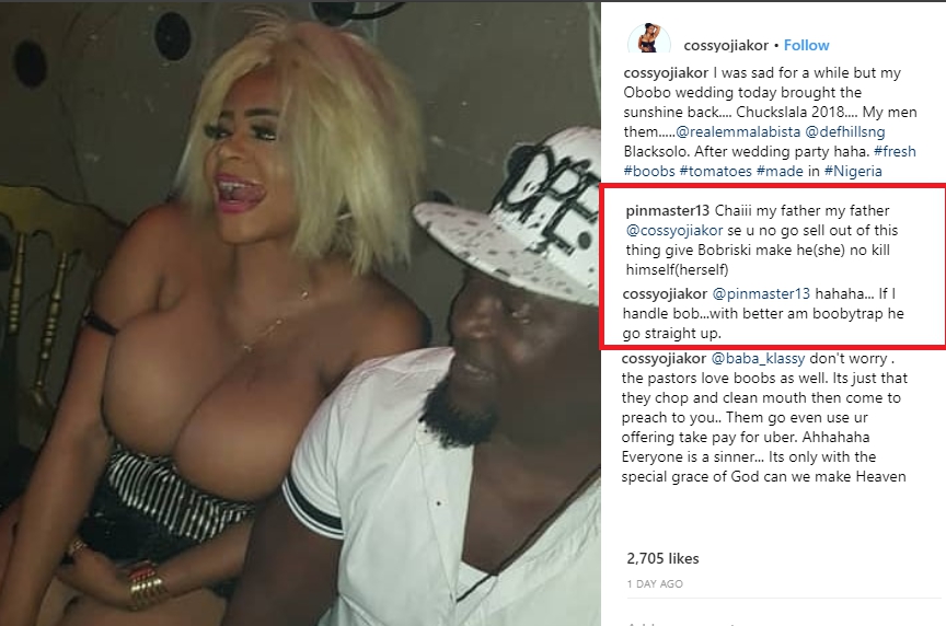 Responding to a fan’s comment on her Instagram page after he asked her to give Bobrisky some boobs. She revealed if she handles him with her bosom, he would turn straight.