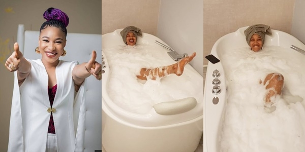 Tonto who was seen in the photos in a semi-unclad state as she posed in a bathtub, also used the opportunity to applaud her best friend in the caption because according to her, what her friend did for her is something she cannot do for herself.
