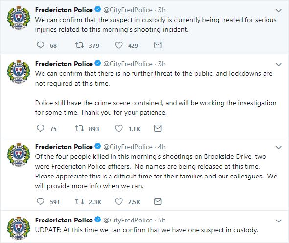 Canadian police have advised residents of Brookside Drive to “stay in their homes with doors locked at this time for their safety”. They added that the public should avoid the area and promised that more details will be provided soon.