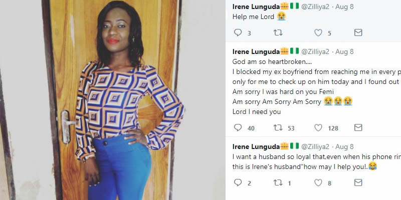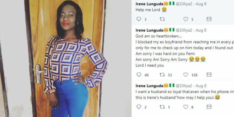 A Nigerian lady, Irene Lunguda is feeling guilty and heartbroken after she discovered that her ex-boyfriend whom she blocked from reaching her in every possible way since 2013, died in 2017.