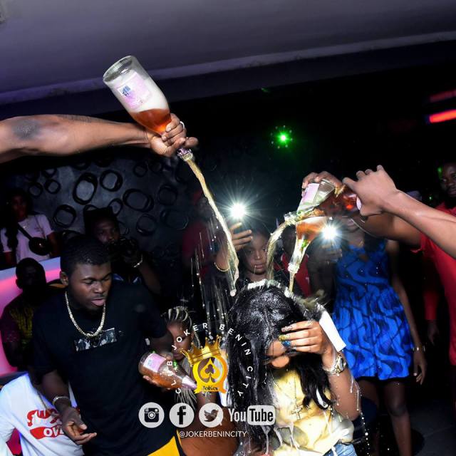 The excited celebrant was poured expensive champagnes during the birthday bash which was taken to another level at Jokers nightclub.