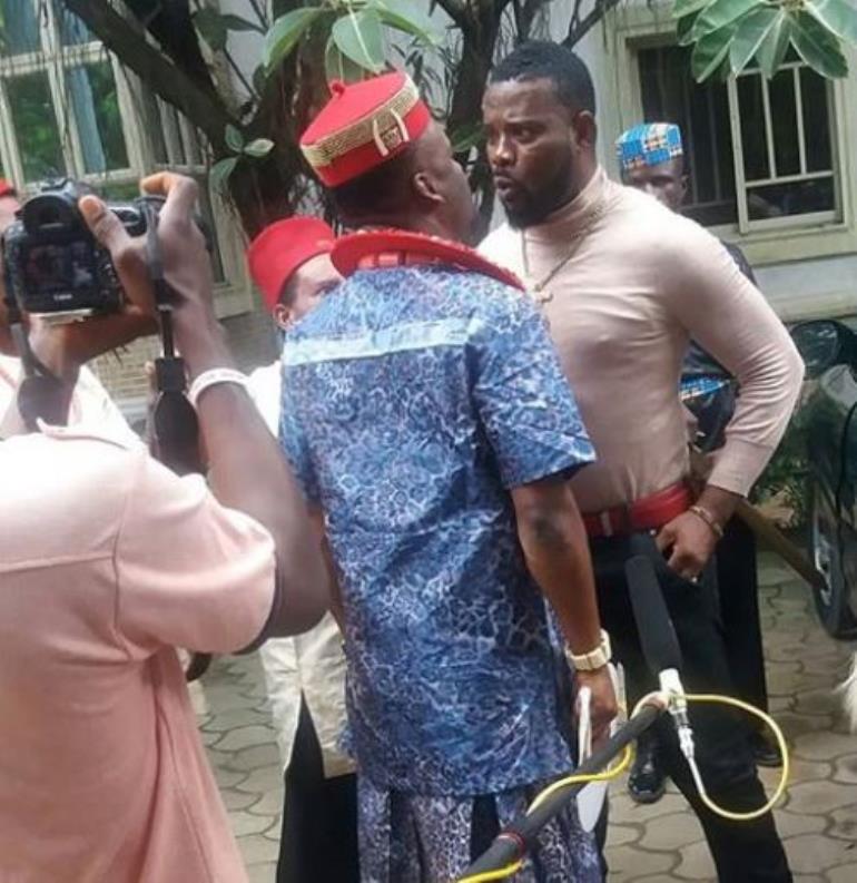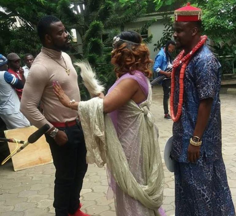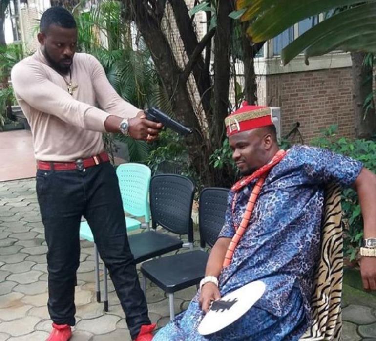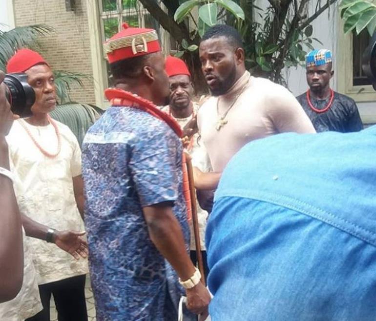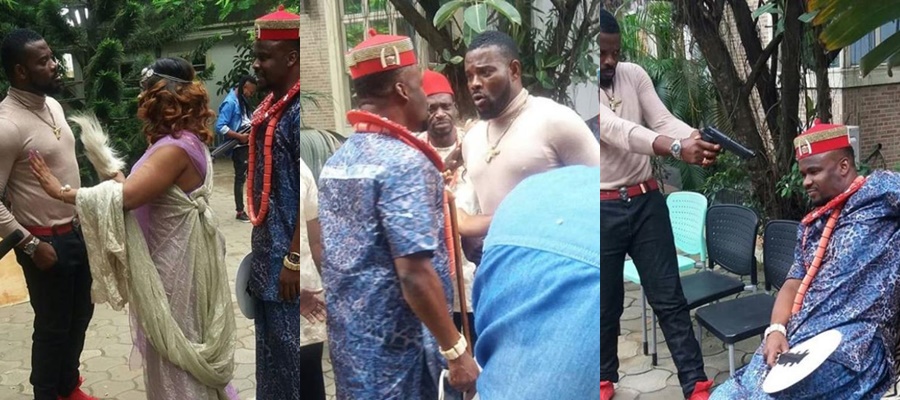 The actor is currently on a movie set with fellow actor, Emeka Enyiocha, and they are not finding things funny at all as they are on each other’s neck over the king’s position in the family.
