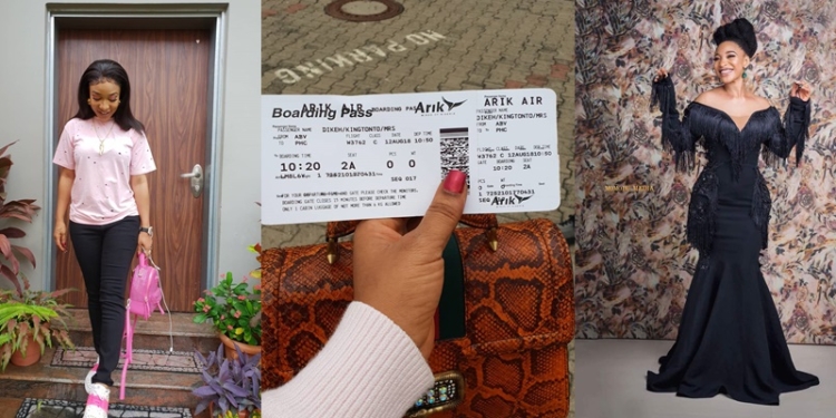 She took to her Instagram page to share a photo of her boarding pass with Arik Air.