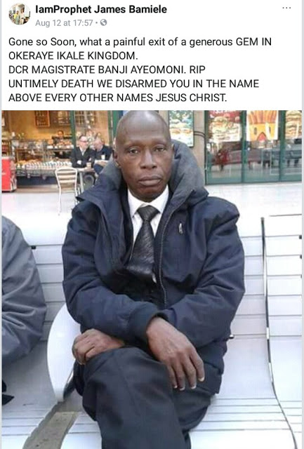 Magistrate Banji Ayeomoni of Okitipupa Magistrates’ Court in Ondo State, together with his son Dara, a 500 level medical student of Ambrose Ali University (AAU), a young relation and their personal driver died in a explosion caused by a petrol tanker spillage in Ekpoma, Edo State.