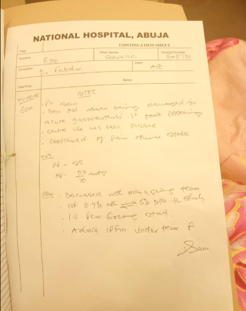 But later that evening I started to vomit and stool uncontrollably and was take to zone 3 hospital in Abuja from there I was transferred to national hospital.