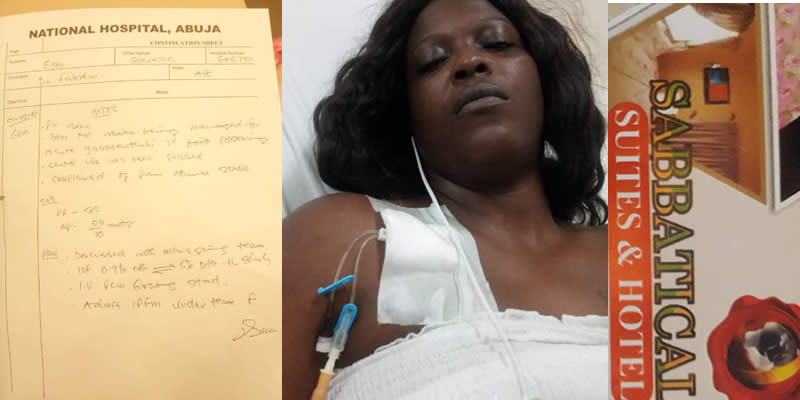 A woman from Trinidad and Tobago is accusing an Abuja Sabbatical Suites, of food poisoning and revealed that her bag was also stolen while she was lodged there.