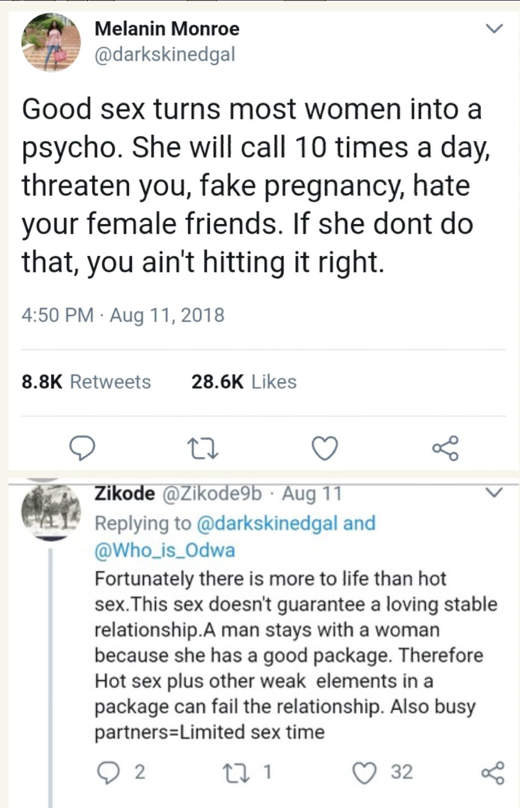 Twitter user, Melanin Monroe @darkskinedgal has voiced her opinion on women and good sex.