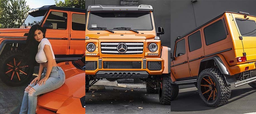 The young celeb had her G-Class customized by West Coast Customs and fitted with 24-in wheels matched with tangerine body paint. She posted the photos of her custom Mercedes Benz G550 4×4 Squared and Lamborghini Aventador SV Roadster on social media.