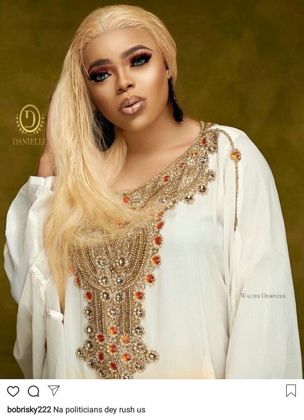 Nigerian male barbie, Bobrisky in his recent post on social media has said it is only politicians that comes after people like them.