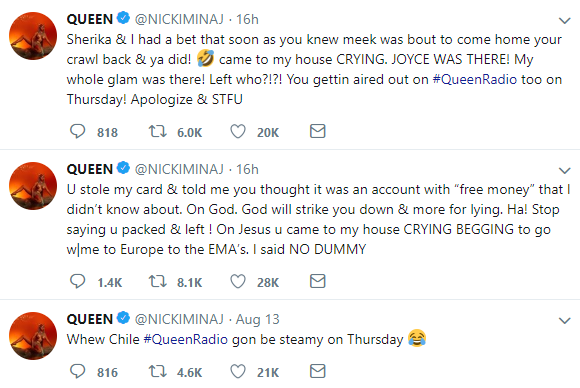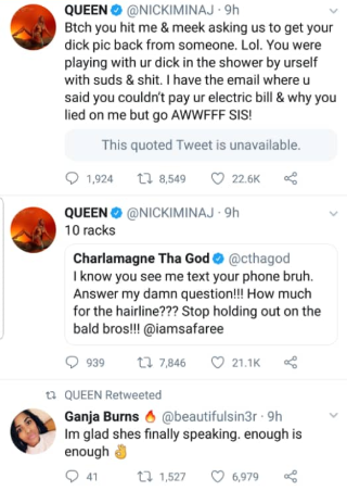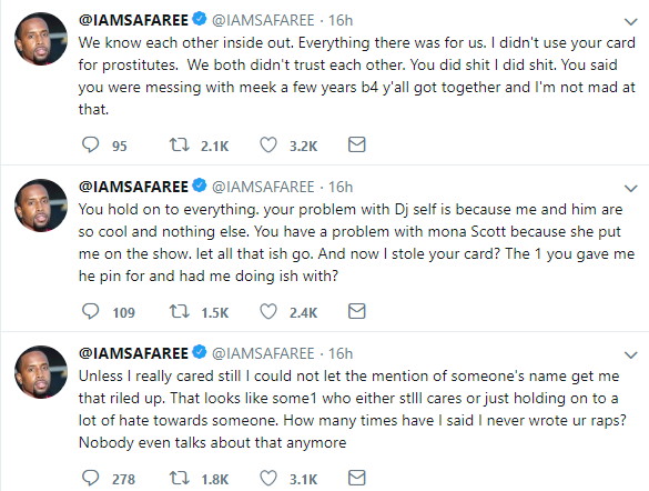 It all began after Nicki granted an interview on Hot 97 where she finally responded to the numerous allegations that it was Safaree who made her who she is and he wrote her lyrics for her. Nicki denied all of these then spilled some tea about him