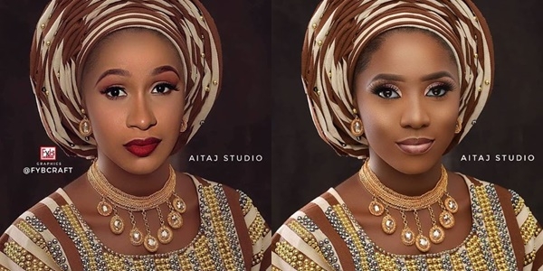 This is a perfectly photoshopped picture of reigning American rapper, Cardi B looking like a real African woman wearing local clothes.