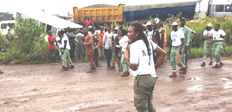 See the photographs of the Monday accident and those of the happy corps members on Friday when Bakare and others paid them a visit at the orientation camp in Sagamu Stadium.